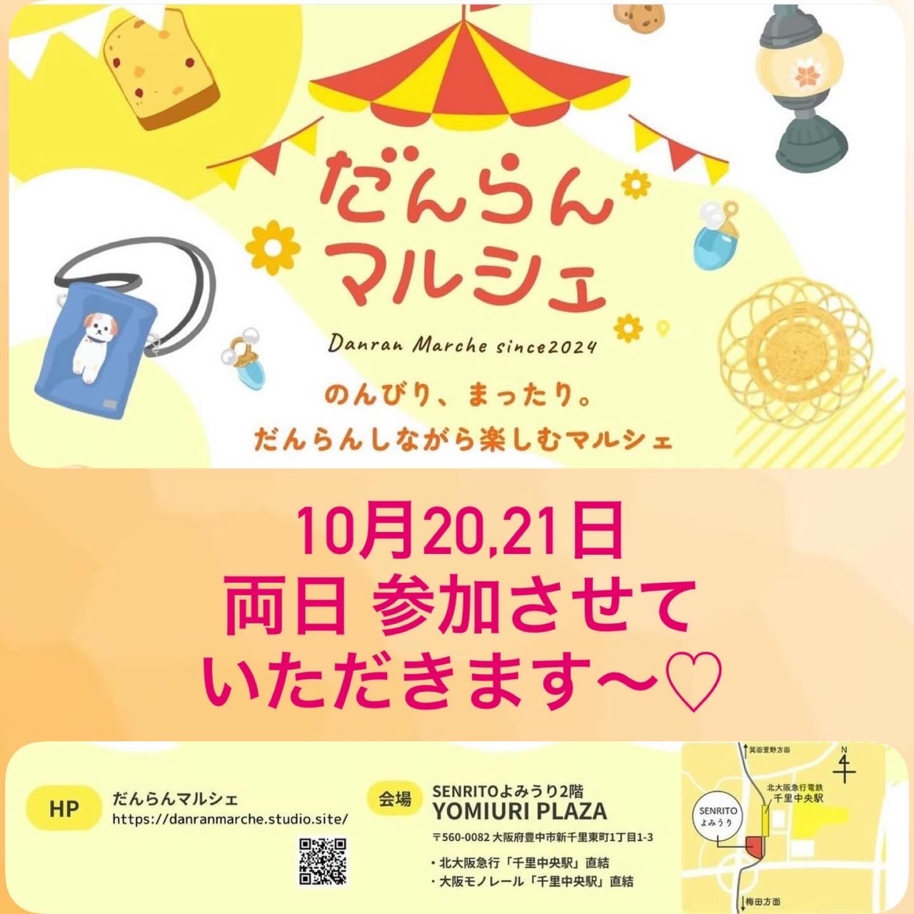 10月20、21日 だんらんマルシェ 2025.09.27 前回 久しぶりに参加させていただき やっぱり めっちゃ楽かった〜 だんらんマルシェ 10月20,21日 の両日 参加させていただきます〜!千里中央ですよ〜 皆さん 遊びに来てくださいね みんなで ゆる〜く お待ちしています 20日のご予約 21日のご予約