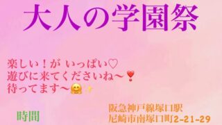 阪急神戸線の塚口駅近くで優しい空気に包まれませんか〜大人の学園祭楽しいに決まってる〜ご予約はこちらから